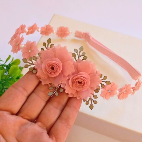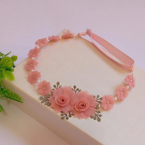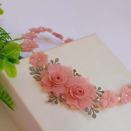 Flores de voal e pérolas .