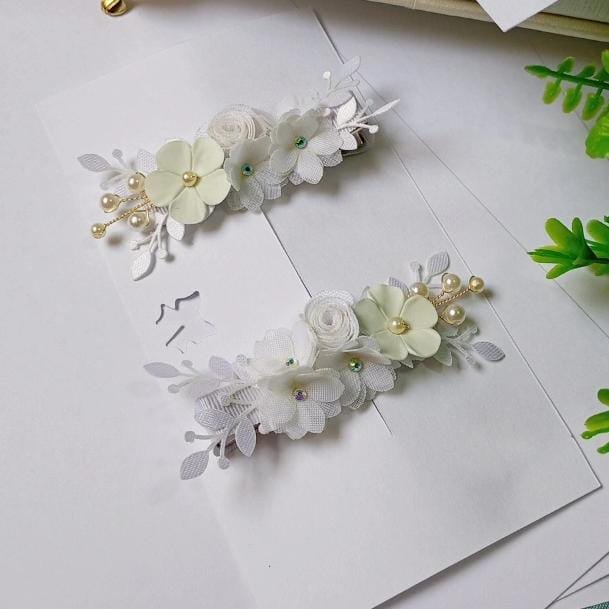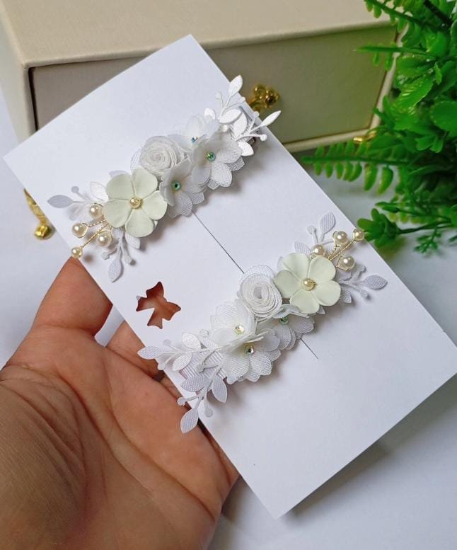 Aplicações de flores em voal e porcelana fria .